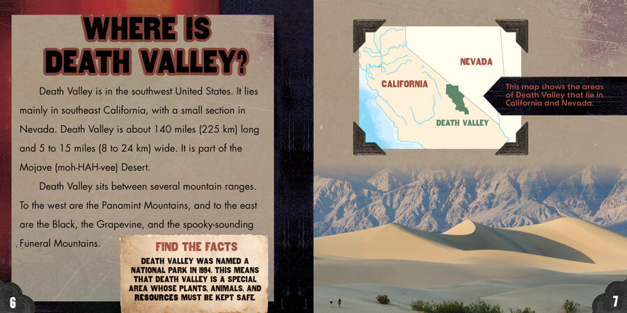 No landform could sound quite as scary as Death Valley! Its name came from a group of gold seekers who almost didn't make it out alive—and some of their companions didn't. In this book, lower elementary readers explore this hot, dry part of the American Southwest and the national park that now exists there. The main content includes the flora and fauna found there as well as the adaptations they need to survive in the heat of the day and cold of the night. Full-color photographs show the unique beauty of the valley, despite its name.