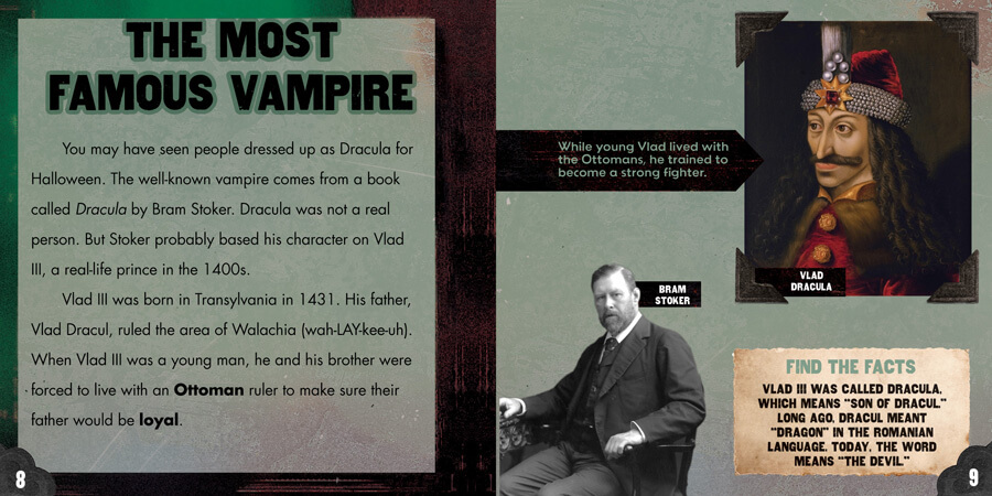 Transylvania is known for its role in Bram Stoker's Dracula as the home of the most famous vampire in popular culture. This book introduces readers to the legend of Dracula as well as the place he is said to have inhabited. Full-color photographs and historical images complement and correlate with the main text to aid reading comprehension. Spooky facts and social studies content pair well together in this volume to engage reluctant readers and curious travelers alike. Who knows? This terrifying tome may inspire the next family vacation!