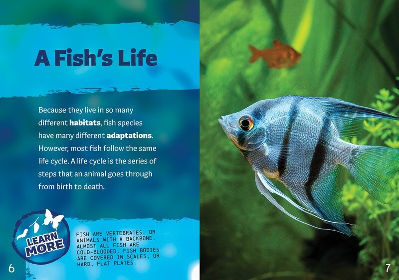 From tiny seahorses to massive blue marlin, there are more than 30,000 species of fish in the world. Though many distinctions appear across the various species, the basic life cycle is usually the same. Over their lifetime, fish change from egg to larva to fry to adult. What changes do they go through along the way? In this interesting and educational book, struggling readers review the key curricular concept of animal life cycles. Accessible, reader-friendly language, vibrant photographs, and helpful diagrams appeal to reluctant readers.