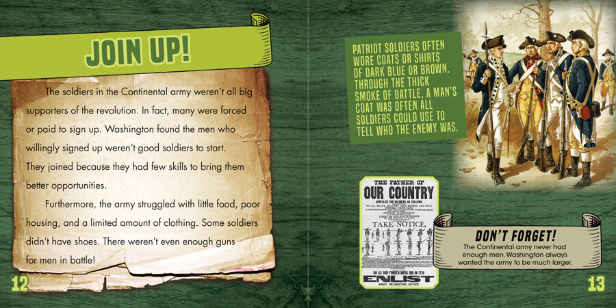 The patriots of the American Revolution are often depicted as fervent, heroic supporters of an independent nation. But did you know that many left the war because they needed to harvest their crops? Facts like these engage readers from the first page of this fun and fascinating volume. The historical content supports the social studies curriculum while interesting tidbits—like the tar and feathering of British supporters—remind readers that revolutionaries were just people too! Fact boxes and historical images add further context for readers.