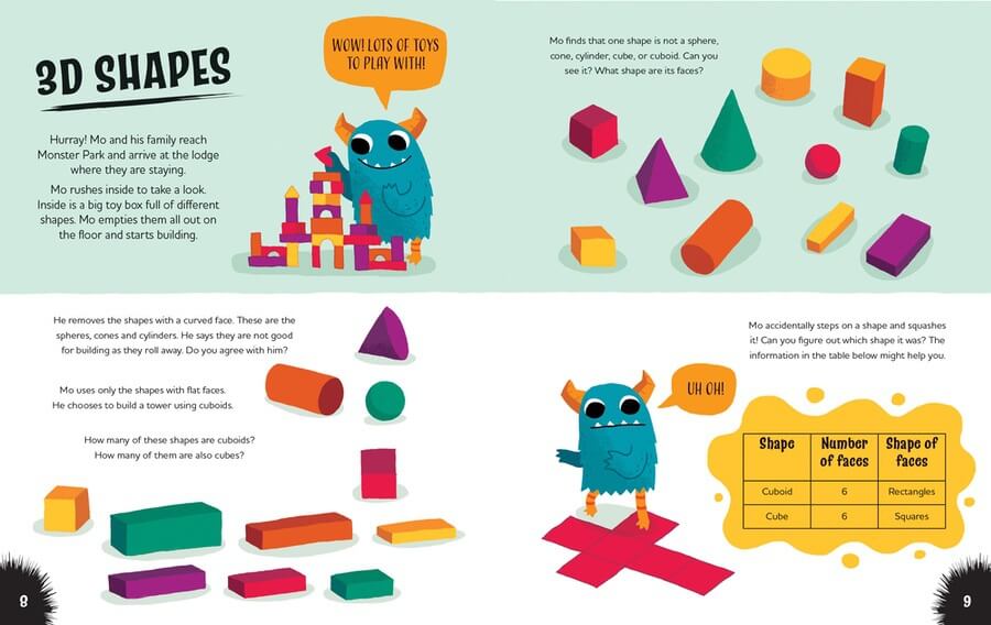 Geometry is so much more than just naming shapes! It includes understanding 3D, reflection, polygons, and more. What better way to explore this curriculum topic than alongside a cute blue monster? Readers meet Mo who is also just starting to learn geometry. In each chapter, Mo learns about a new concept, and each chapter builds upon the knowledge presented earlier in the book. Diagrams and visual aids help readers—and Mo—through pyramids, patterns, and prisms, as they practice what they've learned in problems. A concluding answer key allows readers to check their work.