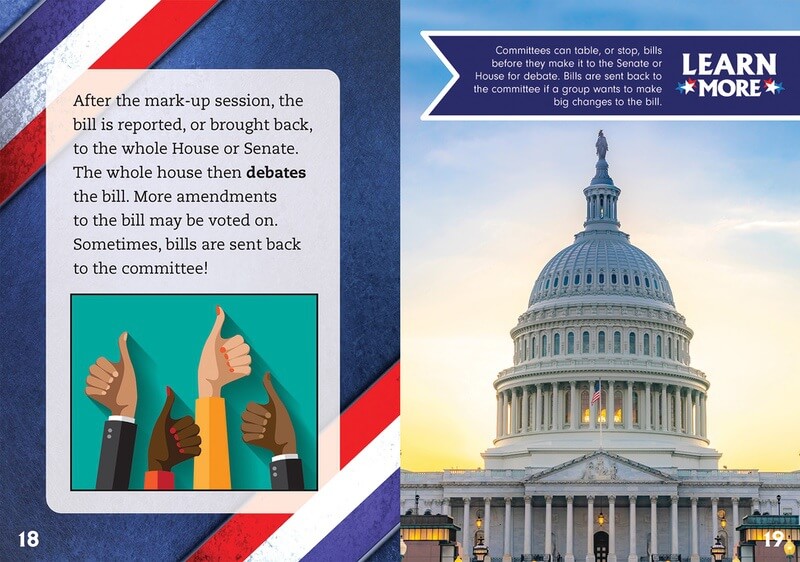 Before a bill can become a law, it has to go through a long process. Before a bill is ever enacted, they are scrutinized and researched by committees in both houses of Congress. The bill might even be rewritten several times before it is ever passed! In this book, this complicated process is broken down into approachable steps for young readers to understand. Fact boxes offer additional understanding of this important process and help readers to understand social studies curriculum.