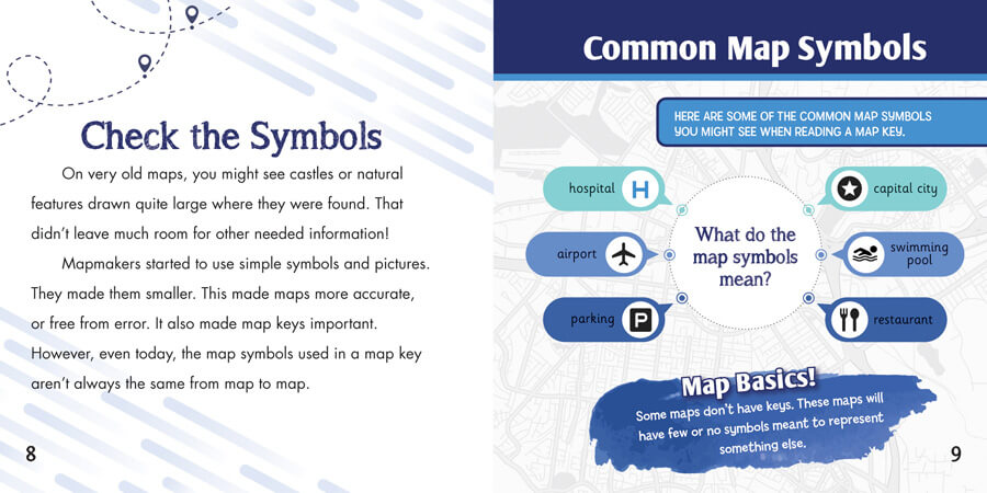 Without a map key, some maps would not be able to be understood at all! The symbols found in the legend, or key, tell what resources a place has, how a country's borders have changed over the course of its history, and so much more. In this helpful book, readers are introduced to common map key symbols and learn how they can be used on all kinds of maps, from political to physical maps. Full-color examples of maps with simple keys help readers apply their new knowledge immediately.
