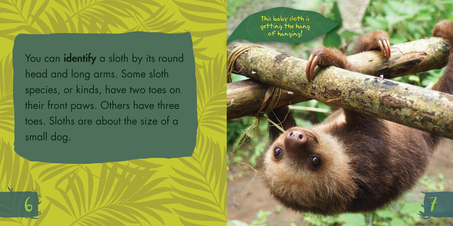 Sloths are famous for being one of the slowest animals in the world. These animals feel right at home in the rain forest, which has plenty of trees for them to hang on. They even sleep upside down! Readers will delight in learning fun facts about sloths in this book. The text is crafted especially for beginning readers so they can understand the language and the concept. Text is paired with colorful photographs that bring readers on an adventure to the rain forest to meet these super-slow sloths.