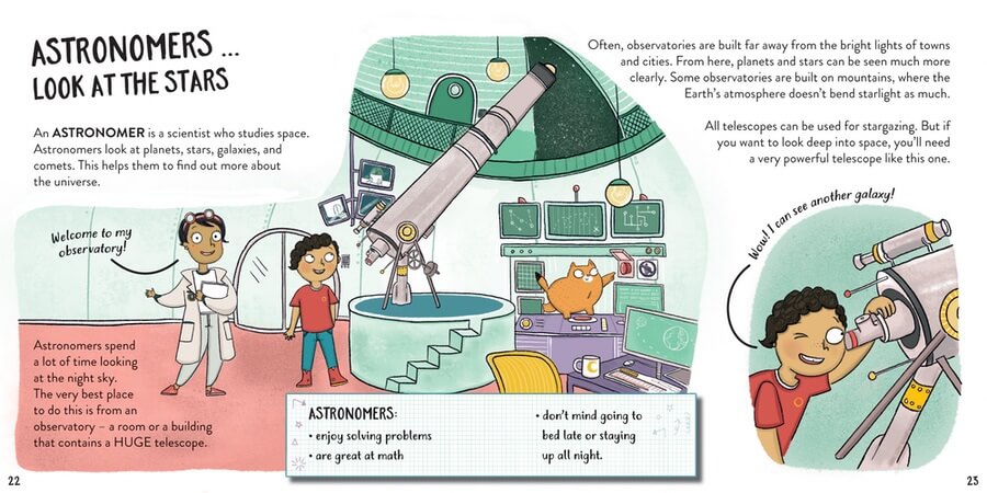 Have you ever wanted to explore the vastness of space? While most people would dream of becoming an astronaut, there are many more jobs to fulfill this dream. If you would rather keep your feet on Earth, why not try being a flight controller, coordinating launches and helping astronauts from the ground? Robotics engineers also work hard in creating unmanned spacecrafts and rovers that help in space missions. Follow along with Billie and Mia the cat as they use their magical dress-up box to explore careers in space.