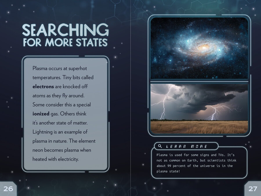 Solid, liquid, and gas—these are the states of matter that young people are introduced to first. They are easily observable in everyday life. Lightning is an example of another state of matter—plasma. And there are still others, including Bose-Einstein condensates, that only exist in extreme conditions. How these states form and why they change is the focus of this engaging book, which pairs accessible information and essential science vocabulary with supporting images and diagrams. Readers will appreciate the approachable text and interesting fact boxes, which encourage their curiosity about curricular concepts.