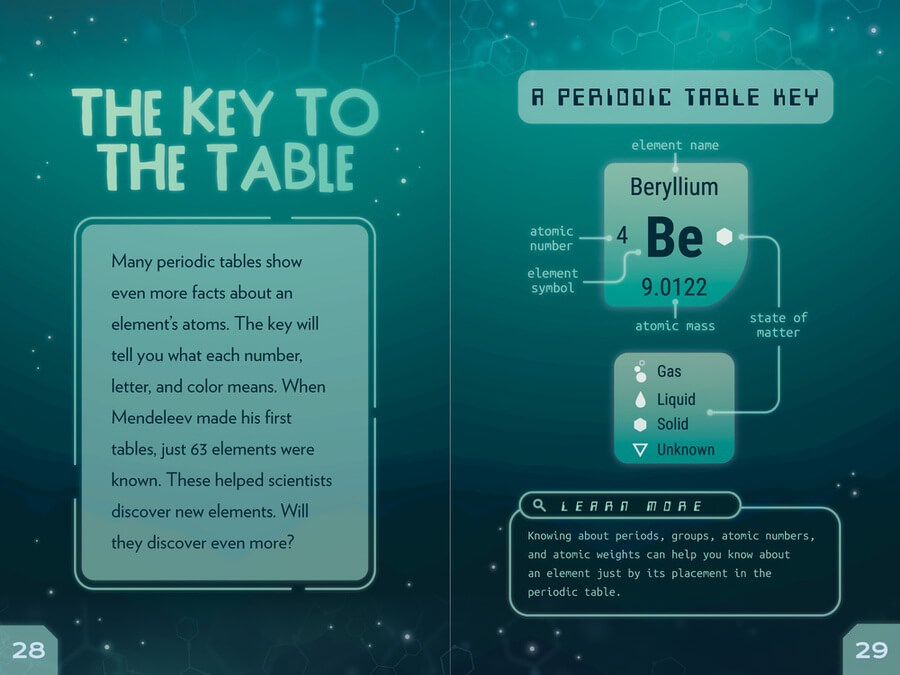 Understanding the elements gets a whole lot easier when you understand the periodic table. For years, scientists tried to make sense of the chemical world through a visually accurate representation. Today's table is organized by increasing atomic number, or the number of protons in the atomic nucleus. This chart has aided in the discovery of new elements—the most recent is oganesson with 118 protons. Through this valuable volume, budding scientists will learn their way around the periodic table, including what an element's atomic mass is and what the rows and columns signify. Fact boxes and labeled images further illuminate difficult curricular concepts.