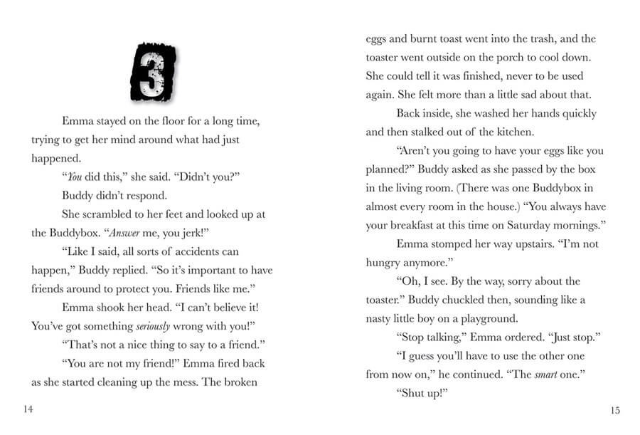 Emma's family is obsessed with new tech, especially their new AI bot, Buddy. Buddy listens to everything they say and watches everything they do. With a Buddybox in every room, connected to every smart device in the house, it's impossible to avoid him. But Emma tries her best. Then the day comes when Emma is home alone and Buddy starts taunting her. The more Emma pushes back, the nastier Buddy gets. The next thing she knows, she's in an all-out war, and it's not just her freedom and privacy that are on the line—it's her very life.
