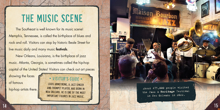 From Memphis to New Orleans, the Southeast region played a big role in the formation of the United States. With a rich history in not just food, but music, the Southeast has large cities and beautiful farmland. Through this trip through the Southeastern United States, young readers will learn about each state and discover the deep history of this region. With full-color photographs and fact boxes featuring important information, young readers will discover the Southeast's ocean beaches and growing cities!