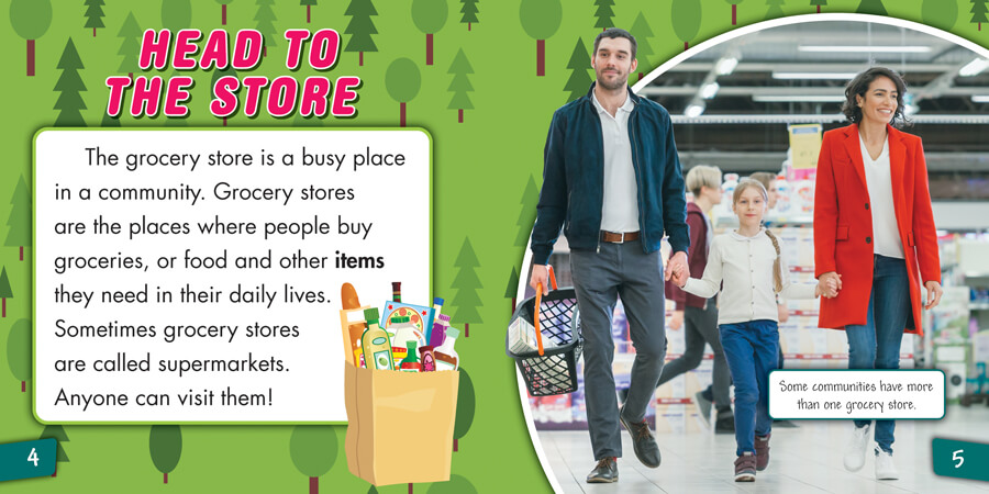 Where can you find milk, meat, and boxed cereal all in one place? A grocery store! Just about everyone needs to visit the grocery store for one item or another, and readers are likely familiar with their local shopping spot. But depending on where you live, a grocery store might be big or small. It might have many aisles, or simply a produce section and a bakery. Readers will learn about what happens at the grocery store and how important they are to the communities they support.